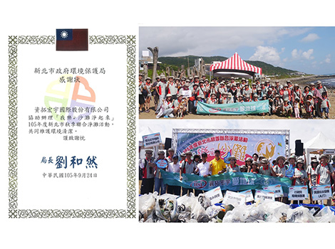 實踐企業公民責任不遺餘力的資拓宏宇,9月24日上午參與了新北市環保局舉辦之105年「新北萬人大淨灘 我樂沙灘淨起來」秋季聯合淨灘活動,以實際行動維護海岸環境,活動圓滿完成並獲頒感謝狀。
