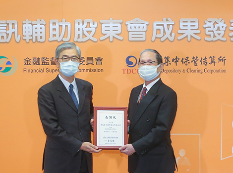 資拓宏宇等17家上市櫃及公開發行公司,率先申請使用集保結算所推出之「視訊輔助股東會平台」,成為領航國內股東會進入數位時代的先行者。因應疫情,在金管會的指導之下,集保結算所推出「視訊輔助股東會平台」,輔助上市櫃公司能以數位化方式辦理股東會。集保結算所 並於9月29日舉辦視訊輔助股東會成果發表會,由金管會主委黃天牧親臨會場並頒發感謝狀予本公司。
